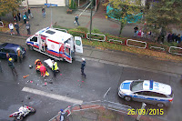Wyjrzałem przez okno, a na skrzyżowaniu ul. Niedurnego i ul. Kościuszki stoi auto, nieopodal leży człowiek, natomiast parę metrów dalej jego motor.